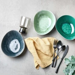 Zurück zur Natur: Unsere De La Roya Schalen im 4er-Set aus Steinzeug sind von organischen Formen, von Blättern und Pflanzen inspiriert. Und das inspiriert Sie dazu, zu Hause mal etwas ganz Neues auf den Tisch zu bringen.