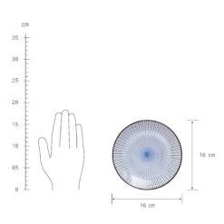 großer Teller: Ø 25,5 cm, Höhe 3 cm, kleiner Teller: Ø 16 cm, Höhe 2 cm, Servierschale: Ø 18 cm, Höhe 5,5 cm, Füllmenge: 420 ml