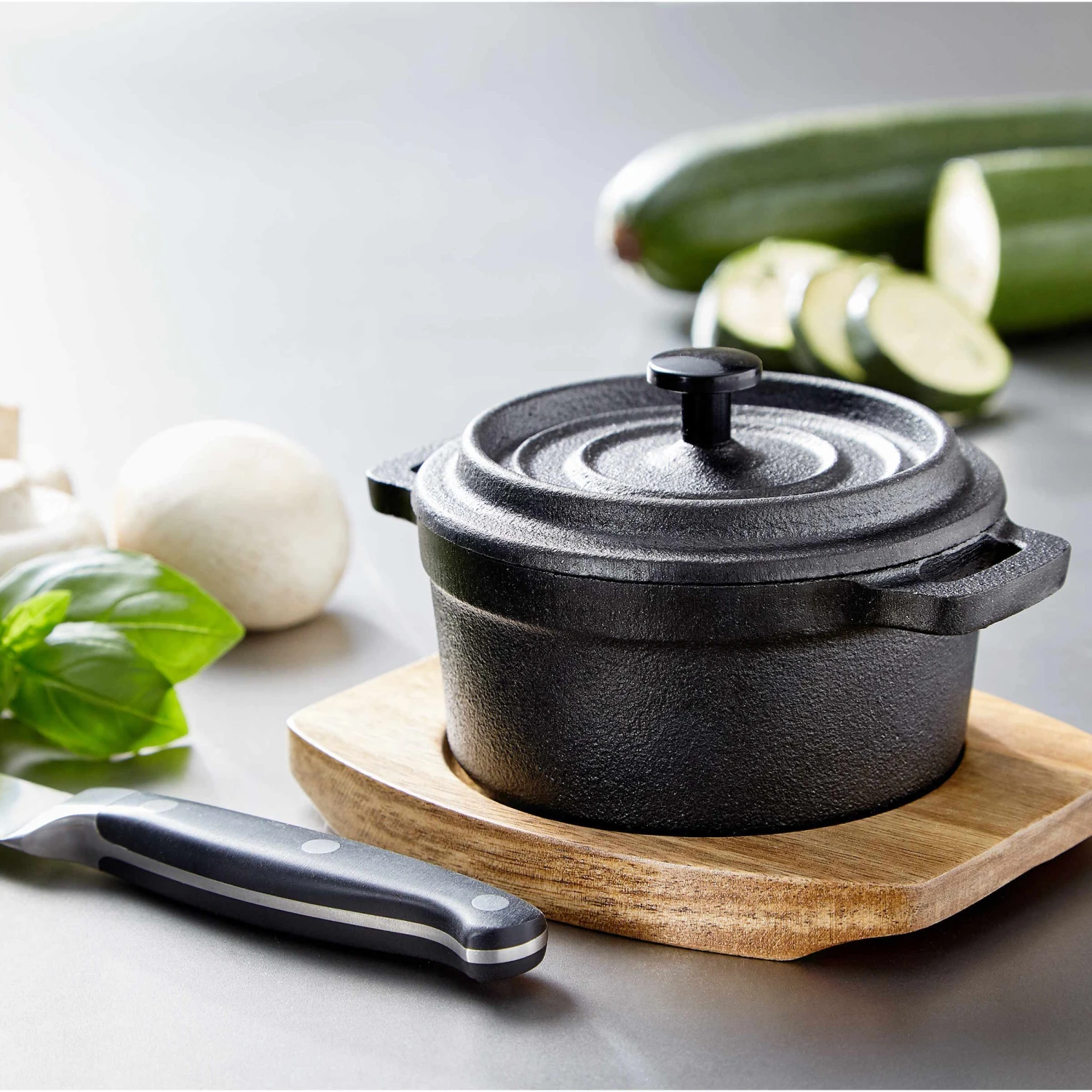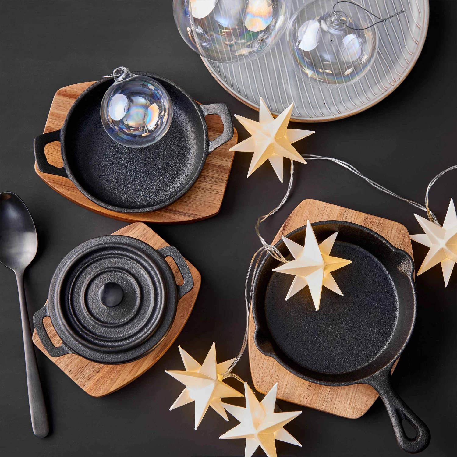 Achtung, heiß und fettig! Mit dem Hot Iron Serviertopf servieren Sie Ihre Gerichte so warm wie sie gekocht wurden. Als hätten Sie Eintöpfe, Suppen und Co. frisch vom Herd auf den Tisch gestellt. Im schwarzen Gusseisentopf bleiben Ihre Speisen länger warm und dank der auf der Unterseite angebrachten Servierplatte aus Akazienholz ist Ihr Tisch vor Hitzeschäden geschützt. Bon Appetit!