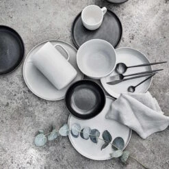 Hier bringt minimalistisches Design die Qualität wirkungsvoll zur Geltung: Die Casa Nova Schale aus Steinzeug wurde liebevoll in Portugal gefertigt. Der Manufaktur-Look zeigt sich im Unikat-Charakter der reaktiven Glasur und leicht unperfekten, organischen Form. Das skandinavische Design und der robuste Look machen die Casa Nova Geschirrserie zu einem zeitlosen Alltagsgeschirr mit natürlichem Touch. Das Geschirr zeichnet sich durch die besondere reaktive Glasur mit effektvollem Farbverlauf aus – verfügbar in den Farben Grau und Schwarz.